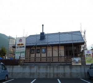 薪ストーブも運び込まれ、ウォーミングシェルフなどを取り付けして仕上げの作業。
